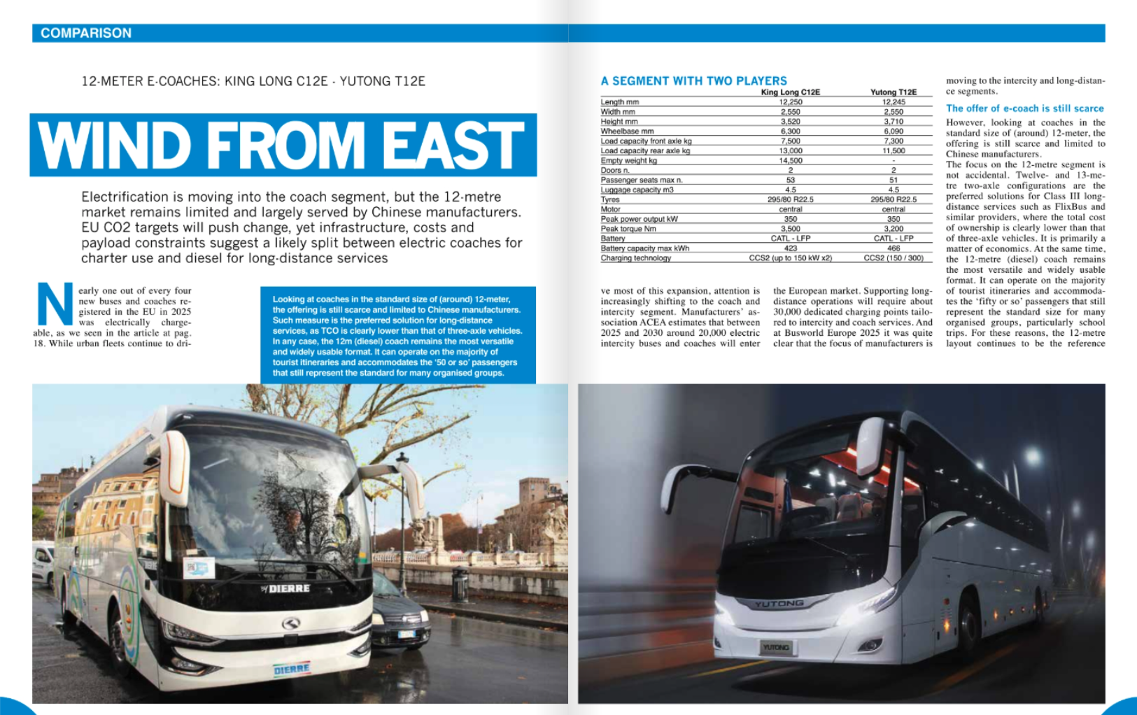 In 2026, the company extended electrification to long-distance and coach operations with the introduction of battery-electric vehicles. The latest addition to the fleet consists of 12 Yutong T12E coaches, marking the entry of electric propulsion into the company’s travel and long-distance segment. These vehicles form part of a broader rollout phase that began in the first quarter of 2026, initially covering 50 buses across both diesel and electric fleets. The same model is analyzed in a comparison article on our latest February 2026 issue of Sustainable Bus magazine.