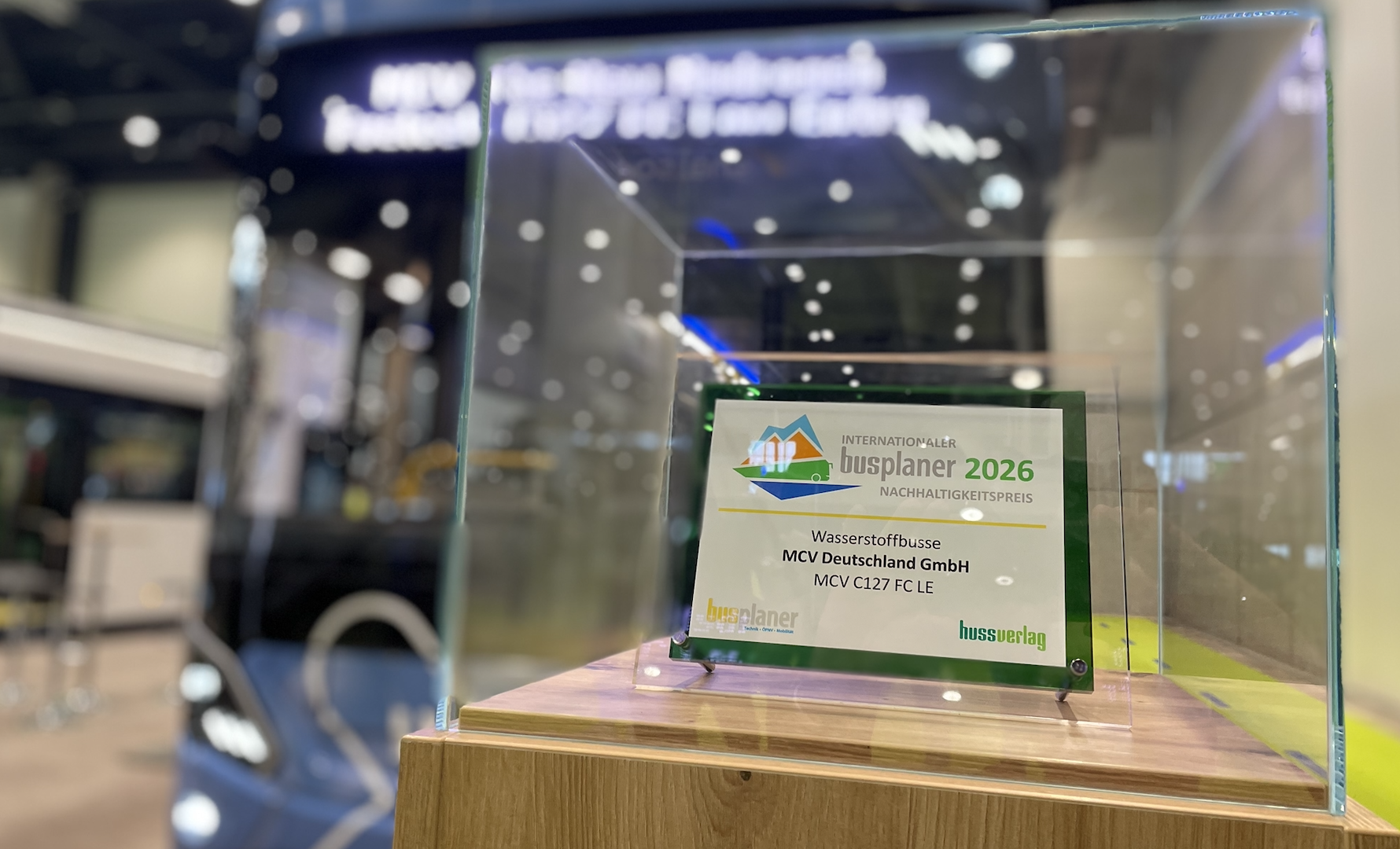 The presentation took place at Hub 27 of the Berlin trade fair, where MCV displayed its latest developments in alternatively powered city buses, including the revised battery-electric C127 EV in “Easy-Bus” configuration alongside its hydrogen-electric counterpart, the newly-launched C127 FC. The latter has been awarded with the Busplaner Sustainability Award 2026 in the hydrogen bus category.